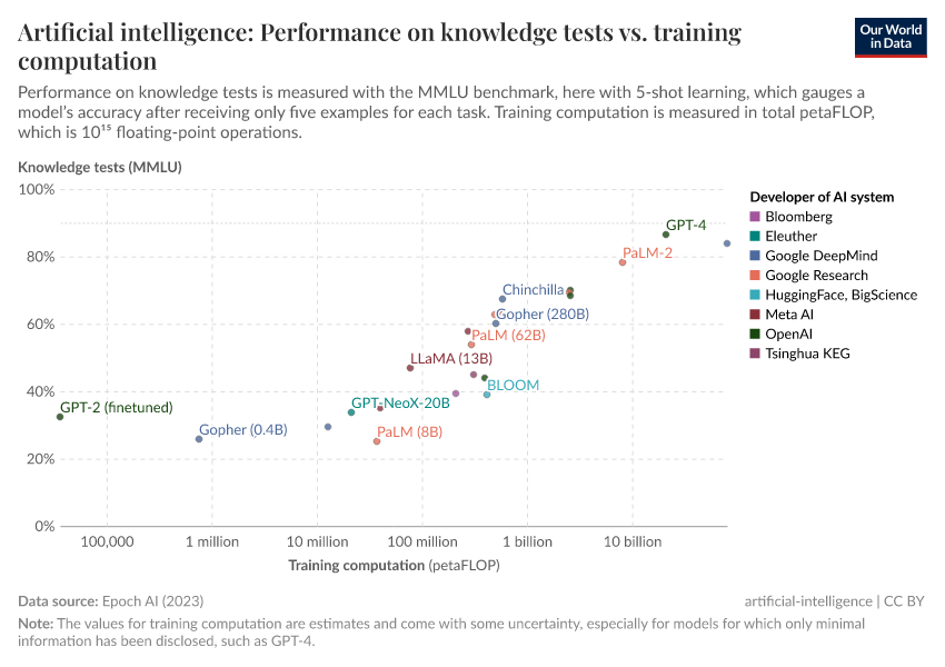 Charlie Giattino, Edouard Mathieu, Veronika Samborska, and Max Roser (2023) - “Artificial Intelligence” Published online at OurWorldinData.org. Retrieved from: 'https://enhance-improve-who-empower.owid.pages.dev/artificial-intelligence' [Online Resource]BibTeX citation