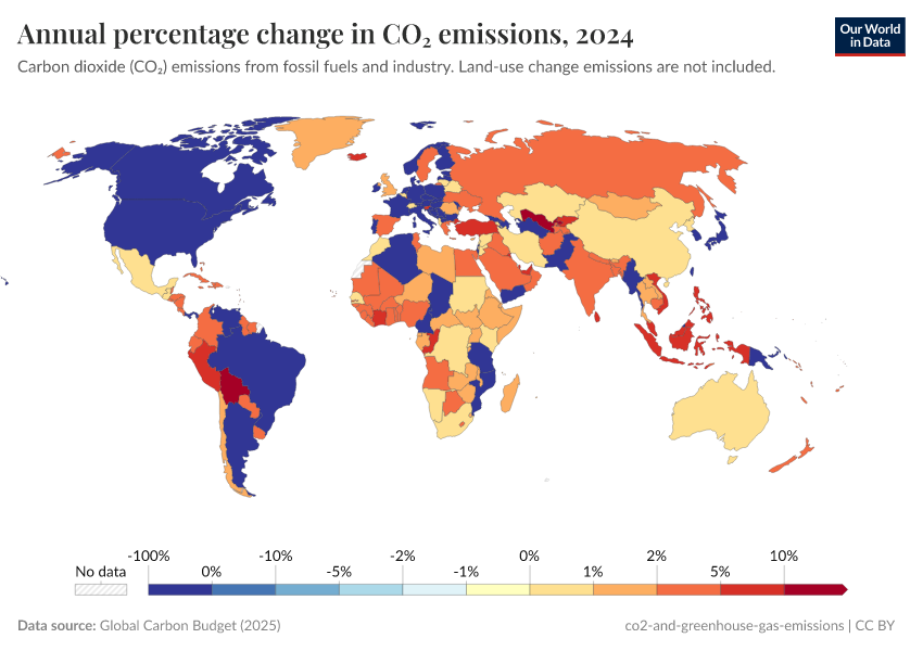 This interactive chart shows the year-on-year growth rate of CO2 emissions.