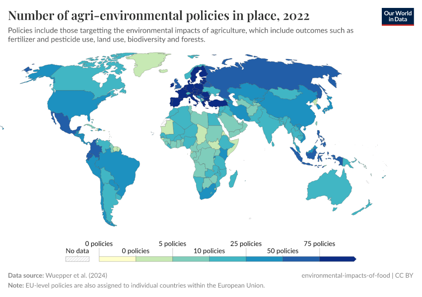 Hannah Ritchie (2024) - “How effective are policies in reducing the environmental impacts of agriculture?” Published online at OurWorldinData.org. Retrieved from: 'https://enhance-improve-who-empower.owid.pages.dev/effective-policies-reducing-environmental-impacts-agriculture' [Online Resource]BibTeX citation