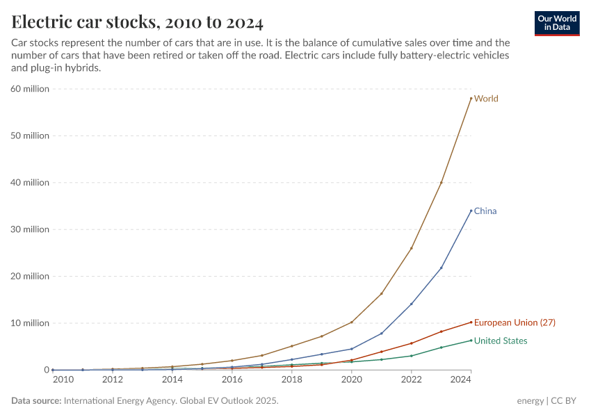 In this article, we look at data from across the world on electric vehicle (EV) sales and the stock on the road.
