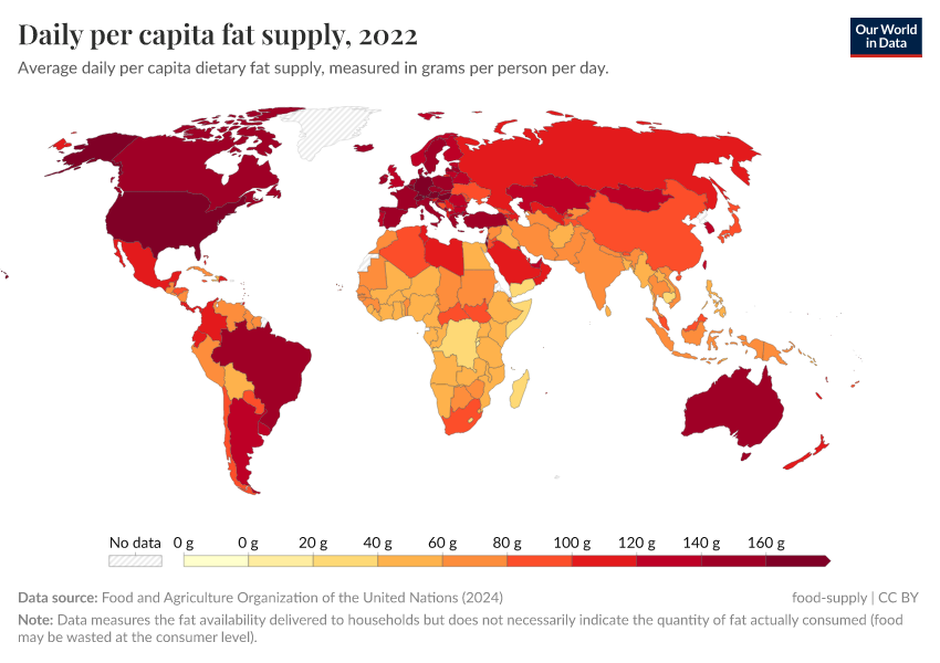 World map of fat supply