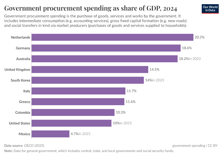 As we can see, public sector purchases from the private sector are significant in many high-income countries.