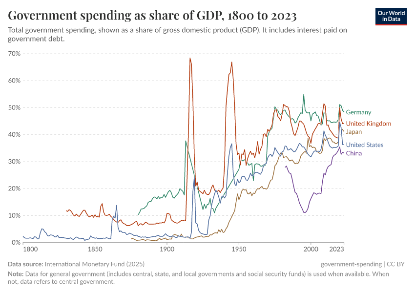 Esteban Ortiz-Ospina and Max Roser (2016) - “Government Spending” Published online at OurWorldinData.org. Retrieved from: 'https://enhance-improve-who-empower.owid.pages.dev/government-spending' [Online Resource]BibTeX citation