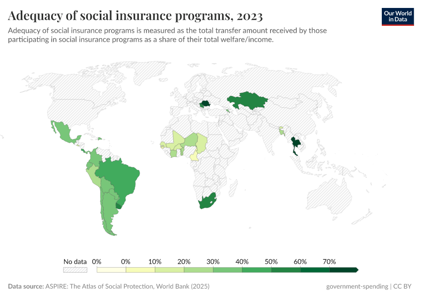 “Data Page: Adequacy of social insurance programs”. Our World in Data (2025). Data adapted from World Bank. Retrieved from https://enhance-improve-who-empower.owid.pages.dev/grapher/adequacy-of-social-insurance-programs [online resource]How to cite this data