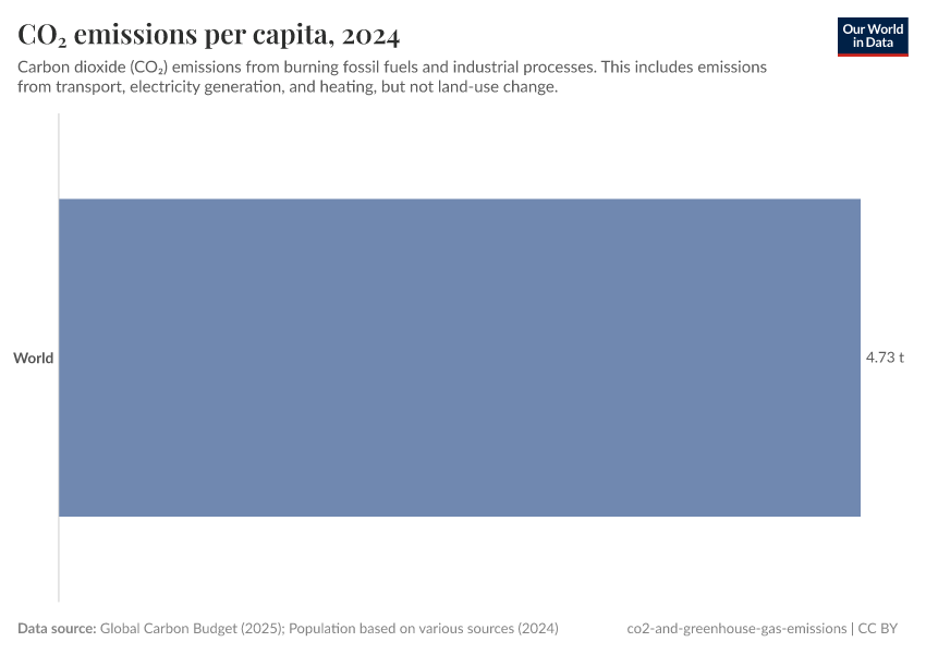 “Data Page: Per capita CO₂ emissions”, part of the following publication: Hannah Ritchie, Pablo Rosado, and Max Roser (2023) - “CO₂ and Greenhouse Gas Emissions”. Data adapted from Global Carbon Project, Various sources. Retrieved from https://enhance-improve-who-empower.owid.pages.dev/grapher/co-emissions-per-capita [online resource]