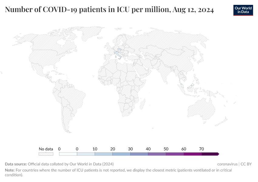 • For countries where the number of ICU patients is not reported, we display the closest metric (patients ventilated or in critical condition).