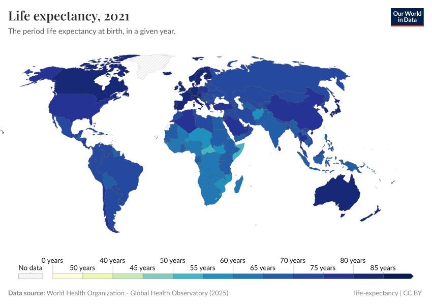 “Data Page: Life expectancy”. Our World in Data (2025). Data adapted from World Health Organization. Retrieved from https://enhance-improve-who-empower.owid.pages.dev/grapher/life-expectancy-at-birth-who-gho [online resource]How to cite this data