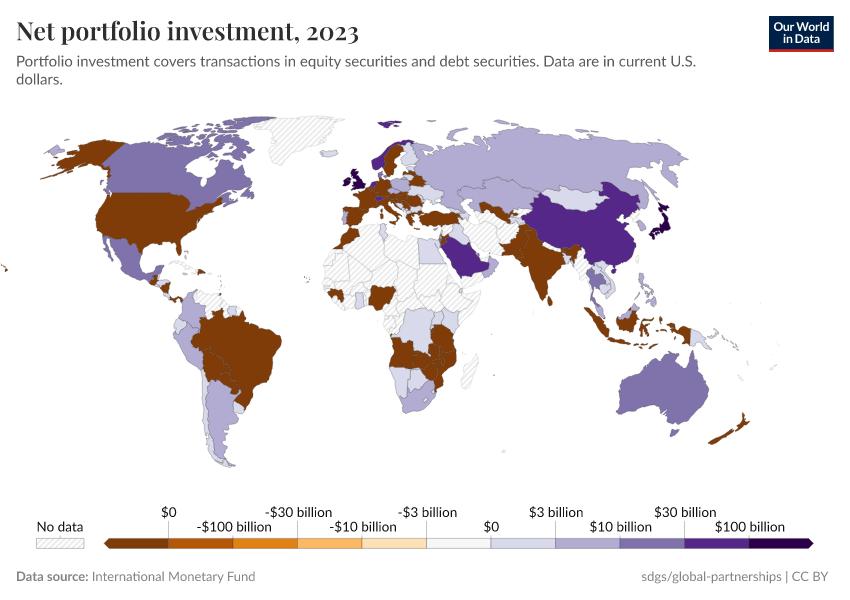 International Monetary Fund – processed by Our World in Data. “Net portfolio investment” [dataset]. International Monetary Fund, “International Monetary Fund, Balance of Payments Statistics Yearbook and data files.” [original data]. Retrieved May 8, 2025 from https://enhance-improve-who-empower.owid.pages.dev/grapher/net-portfolio-investment