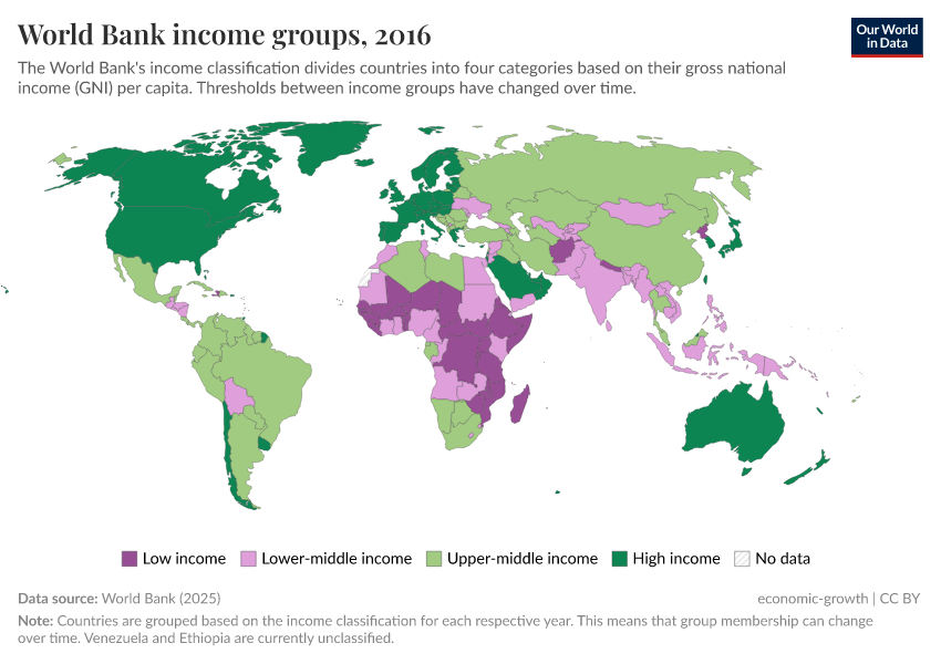 World Bank (2024) – with major processing by Our World in Data. “World Bank income groups” [dataset]. World Bank, “Income Classifications” [original data]. Retrieved May 8, 2025 from https://enhance-improve-who-empower.owid.pages.dev/grapher/world-bank-income-groups