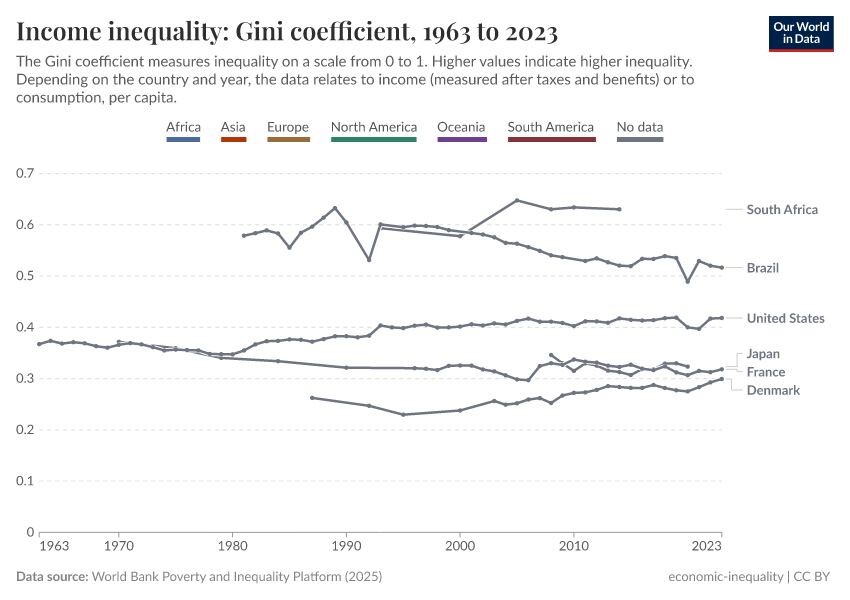 This has had little effect on our overall understanding of poverty and inequality around the world. But because of the change of units, many of the figures mentioned in this article will differ from the latest World Bank figures.