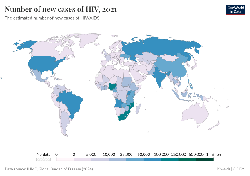 You can explore the total number of people living with HIV/AIDS worldwide here.