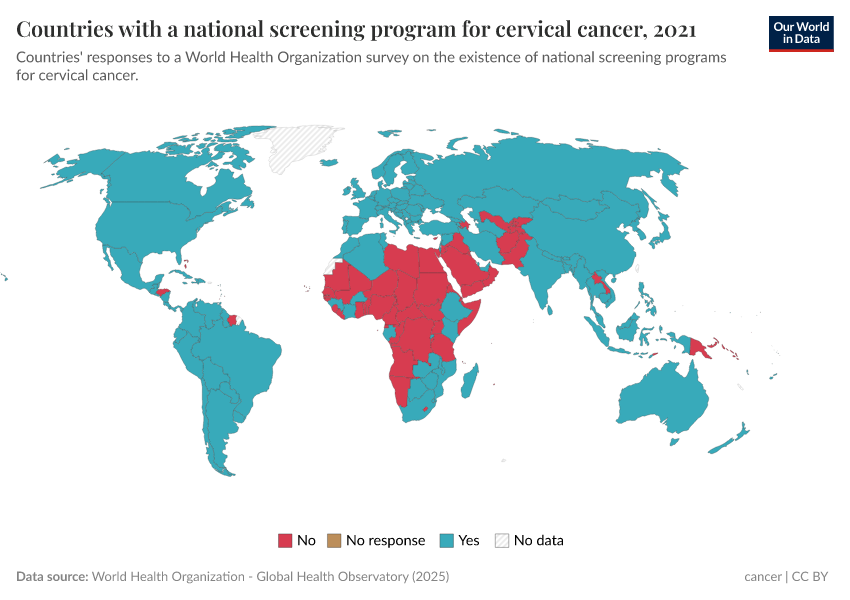 How common is cervical cancer screening within countries?