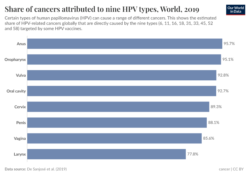 The virus is also responsible for a large share of other cancers, including anal cancer, penile cancer, vulval cancer, vaginal cancer, and some head and neck cancers.1
