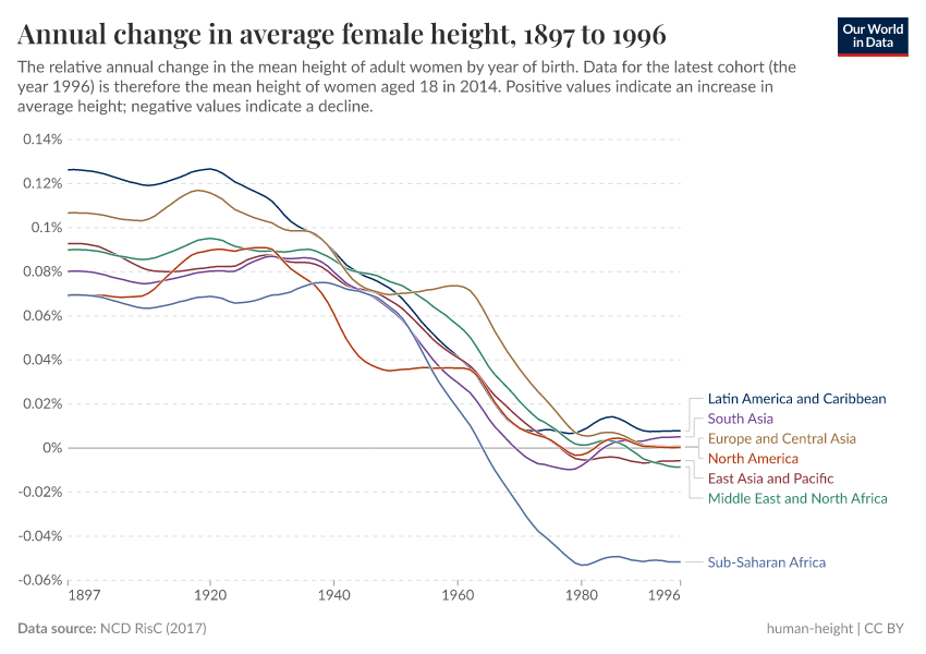Relative changes offer a different perspective on changes in average human heights, illustrated here in men and here for women.