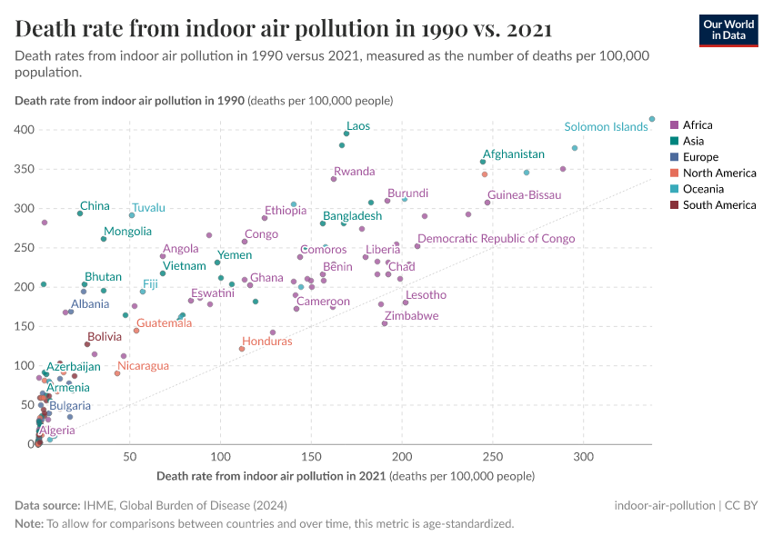 Hannah Ritchie and Max Roser (2022) - “Indoor Air Pollution” Published online at OurWorldinData.org. Retrieved from: 'https://enhance-improve-who-empower.owid.pages.dev/indoor-air-pollution' [Online Resource]BibTeX citation