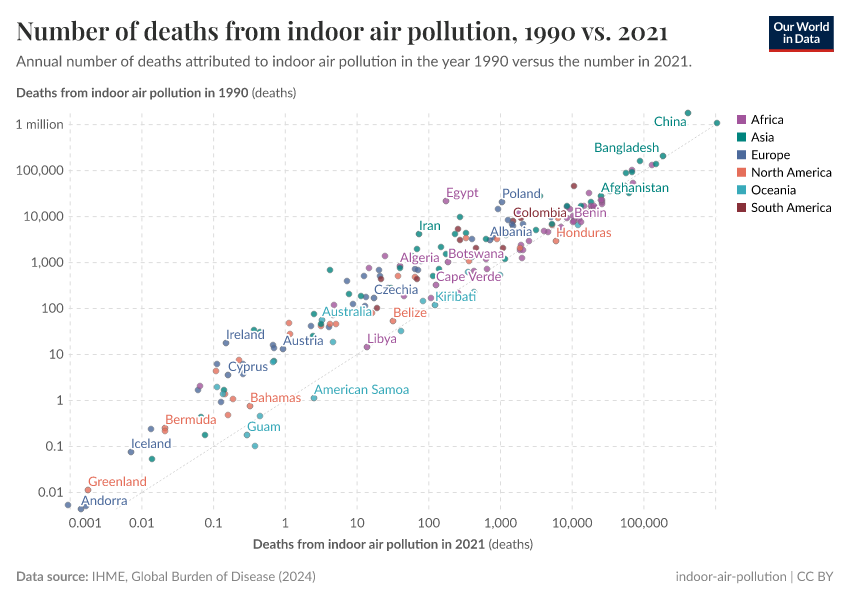 This means that despite continued population growth in recent decades, the total number of deaths from indoor air pollution has still declined.