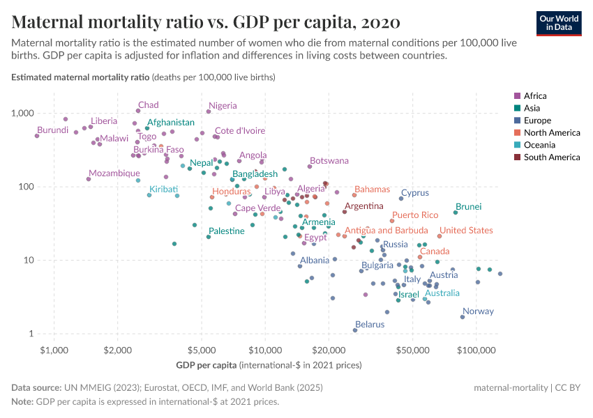 But a more important factor is the much higher maternal mortality rates found in lower-income countries, as we’ll see below.