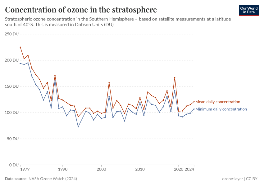 Hannah Ritchie, Lucas Rodés-Guirao, and Max Roser (2023) - “Ozone Layer” Published online at OurWorldinData.org. Retrieved from: 'https://enhance-improve-who-empower.owid.pages.dev/ozone-layer' [Online Resource]BibTeX citation