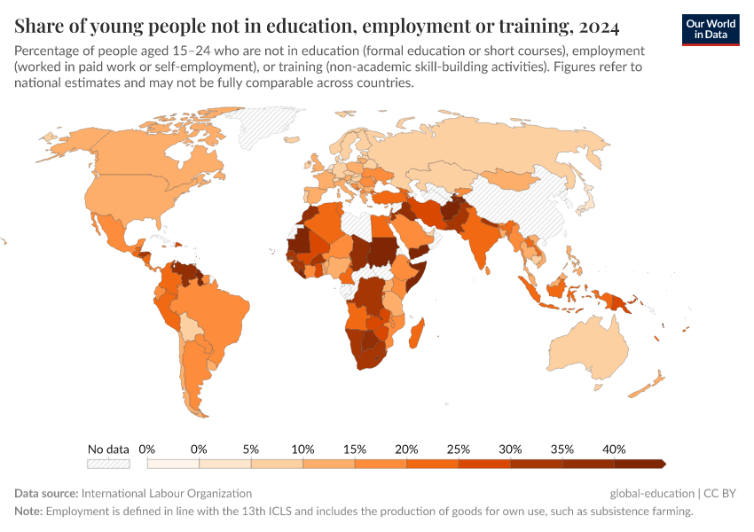 This is measured as the share of young people (aged 15-24 years) not in education, employment or training in a given country and year.
